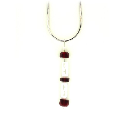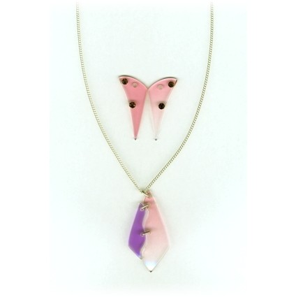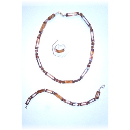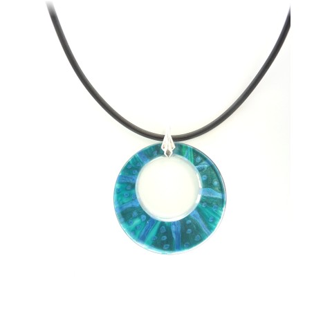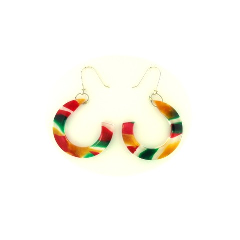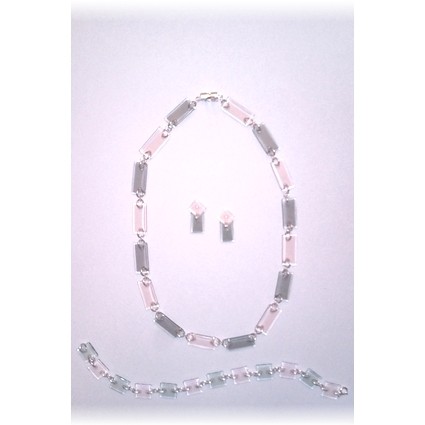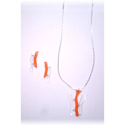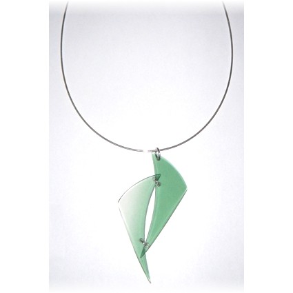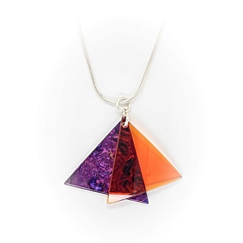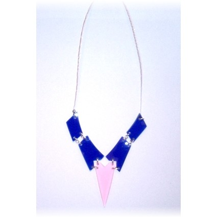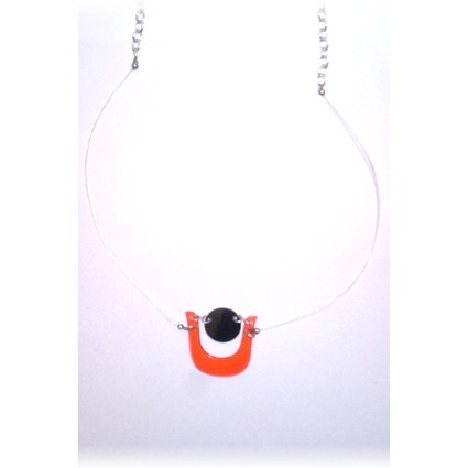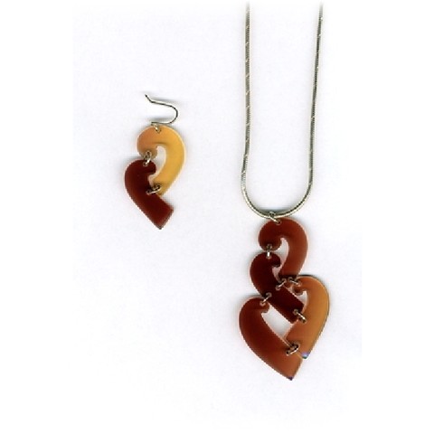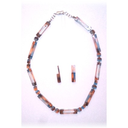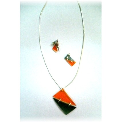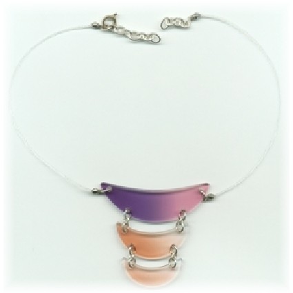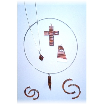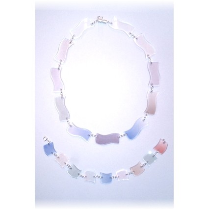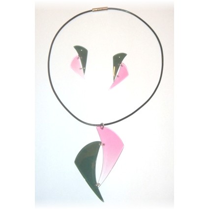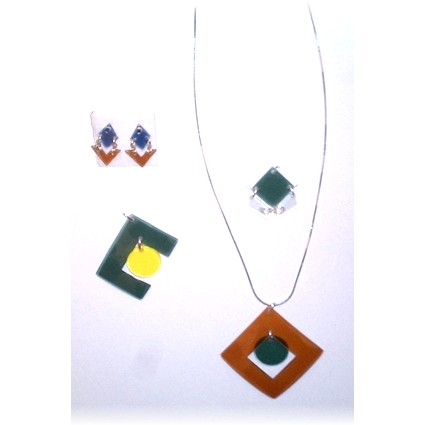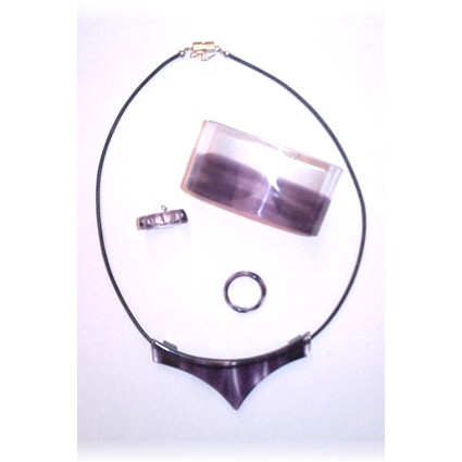 Modischer Schmuck, vorwiegend aus Kunststoff, z.B. mit Silber kombiniert und in Handarbeit gefertigt.
